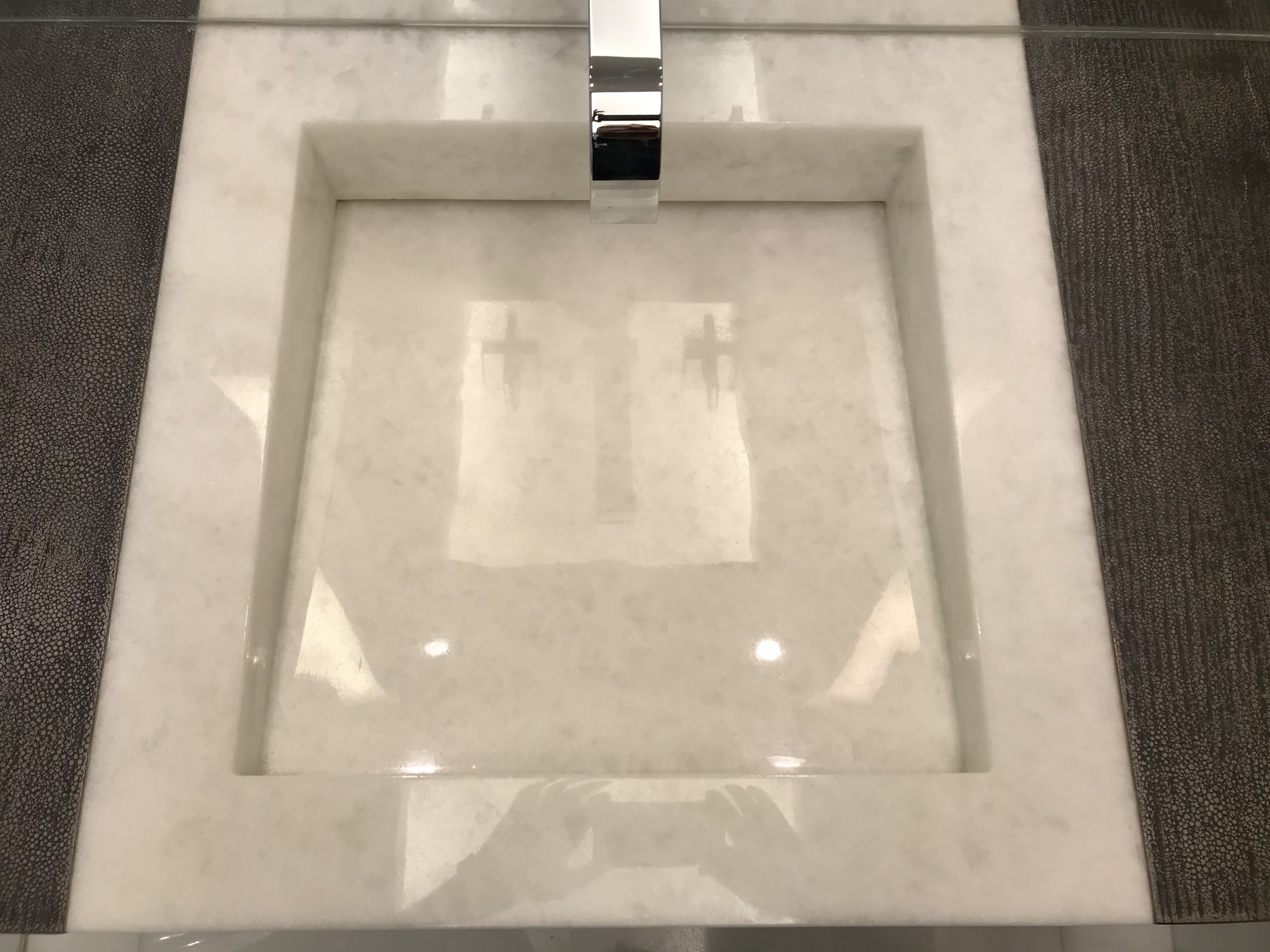Restauro di marmo bianco di Carrara da macchie gialle di ruggine